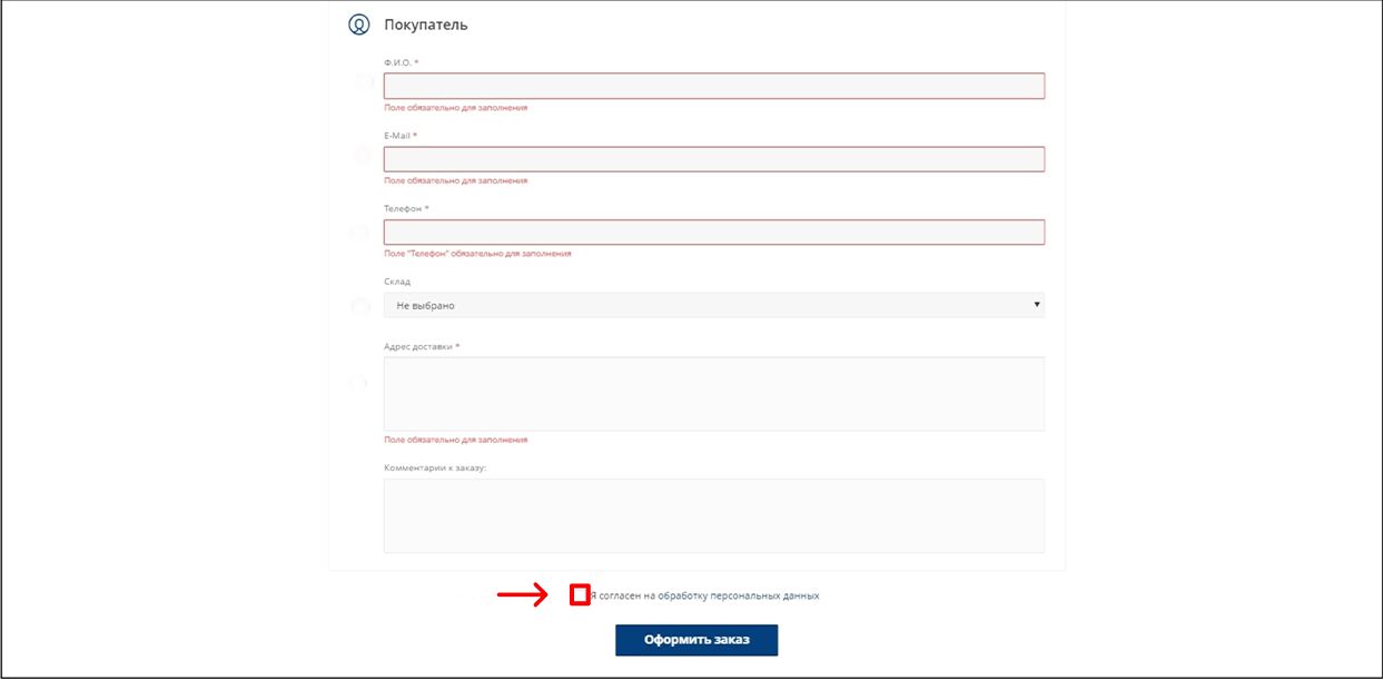 6. На странице оформления нужно выбрать: